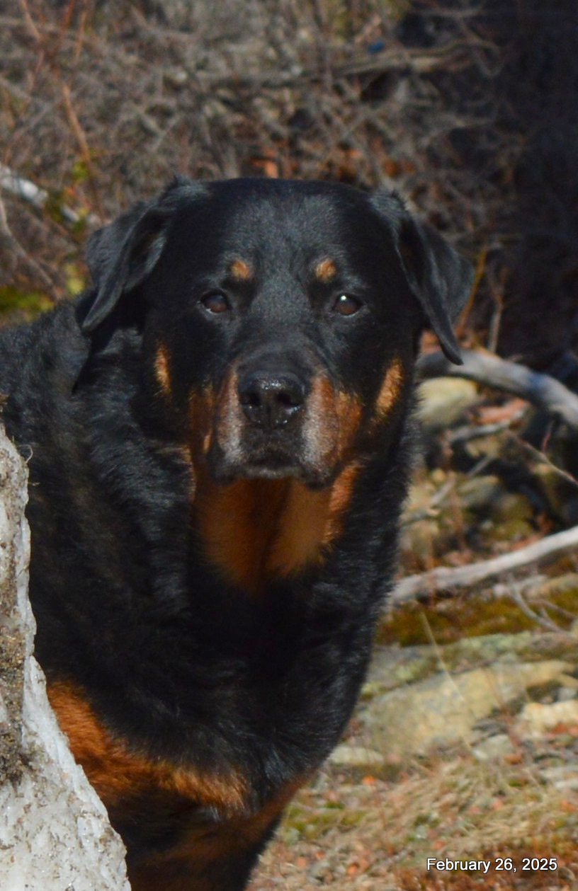 As we were ready to start our Obedience, Covid came, and she is now enjoying Retirement and just being our beloved pet. Shown below in Jan and Feb 2025...…………….